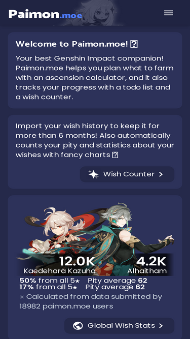 Genshin Impact damage leaderboards, profile sharing, character cards generator and more