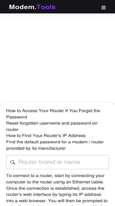 50%Forgot your modem login password? Found or recover your router factory default ip address, username and password.