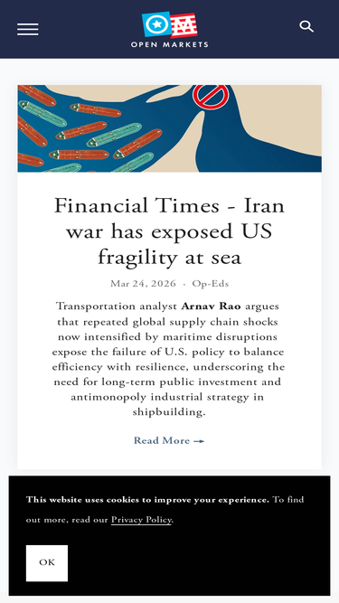 The Open Markets Institute is a non-profit organization dedicated to stopping monopolies, strengthening antitrust law and competition policy, and promoting fair democracy for all.