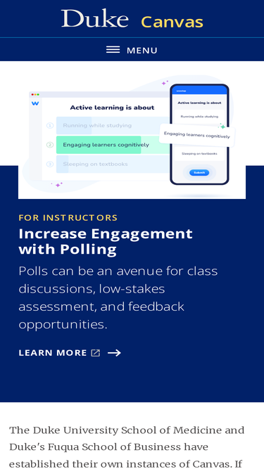 The Duke University School of Medicine and Duke's Fuqua School of Business have established their own instances of Canvas. If you are attempting to access a course for ei