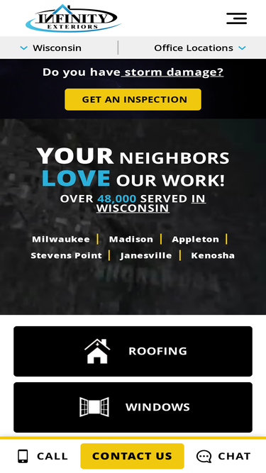infinity exteriors builds residential & commercial roofing, siding, seamless aluminum gutters & covers, atticat blown-in insulation and double or triple pane windows in milwaukee, madison & appleton. 9 out of 10 roofs installed today cannot pass a simple manufacturer's warranty inspection! get your roof built by sober industry professionals today.