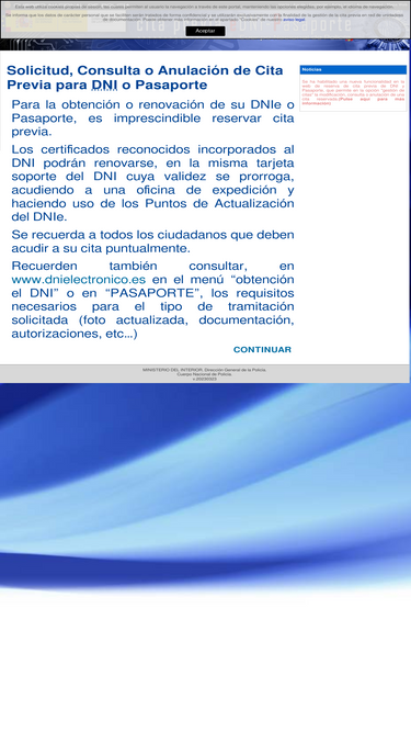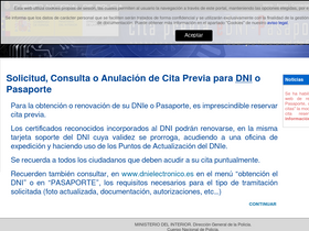 página de la dirección general de la policía para la renovación del documento nacional de identidad y el pasaporte.