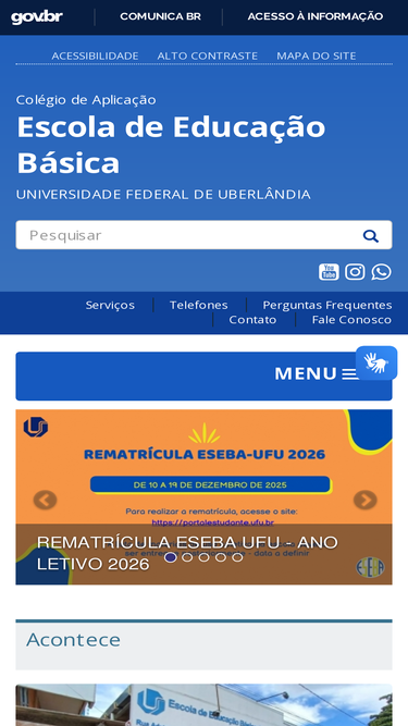 Competências: A Escola de Educação Básica - Eseba - é uma Unidade Especial de Ensino da Universidade Federal de Uberlândia, cuja finalidade é oferecer ensino básico ao público da Educação Infantil e do Ensino Fundamental, bem como oportunizar campo preferencial para estágios práticos de alunos dos c