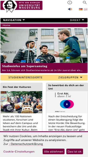 47%Die Universität Magdeburg ist eine junge und dynamische Profiluniversität und verlässliche Partnerin für Wirtschafts-, Wissenschafts- und Bildungspartner der Region sowie darüber hinaus. Der Fokus in Forschung und Lehre liegt auf den Ingenieur- und Naturwissenschaften, der Wirtschaftswissenschaft und der Medizin. Ergänzt wird das Profil durch eine zukunftsorientierte Humanwissenschaft.