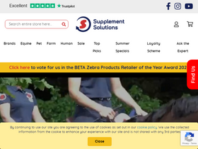 supplement solutions is a beta award winning retailer, established 20 years ago. free uk delivery for orders over £75* the uk largest equine supplement specialists with over 200 brands, and 4000 products, including audevard, equilibrium, global herbs, hilton herbs, horse first, leovet, liveryman, naf, nutriscience, protexin, westgate labs, science supplements, plus much more. plus equine care, show and fly products . horse wormers, worm testing, canine, feline wormer and flea treatments. recently launched safety solutions with qualified fitters of beta body protectors and riding hats (racesafe, champion, gatehouse). * uk mainland only