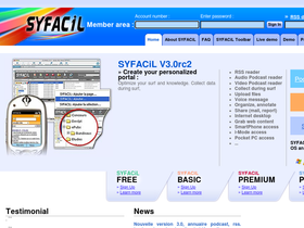 90%syfacil is an online asp service for collecting, organizing, and sharing multimedia information collected from internet, sms, mms, voice phone, and hard drives. the best online service fo collect and store your information. capture a wide range of content including images, text snippets, links, advertising, complete web pages, documents, documents uploaded, sms, mms, voice messages. syfacil lets you organize and retreive captured content easily like a regular destop application, works with major browsers versions ans operating systems. powerful syndication, and multi device system, consult information collected anywhere from mutiple devices like, smartphone mobile, pocket pc pda, regular browser.