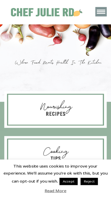 Terms of Use and Privacy Policy As of May 30, 2018, Privacy Policy The privacy of visitors to www.chefjulierd.com (“Website”) is very important to Julie Harrington, RD (“Julie Harrington”). From time to time we may change this Privacy Policy, so please check back in the future as necessary to ensure you’re still comfortable visiting this...