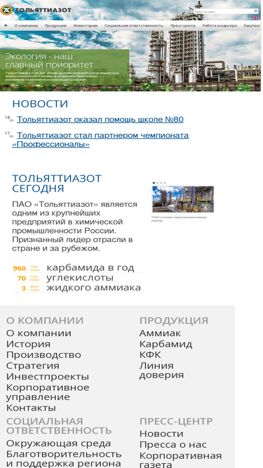 82%тольяттиазот — одно из крупнейших предприятий химической промышленности россии, входящее в тройку основных производителей аммиака в стране и в десятку мировых лидеров.