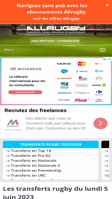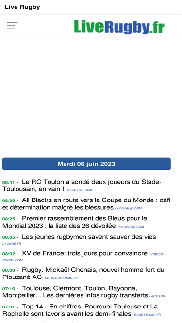 71%Découvrez toute l'actualité du rugby sur Rugbyrama : résultats, classements, analyses, interviews exclusives et vidéos des plus grands championnats. Suivez en direct le Top 14, Pro D2, Champions Cup, le XV de France...