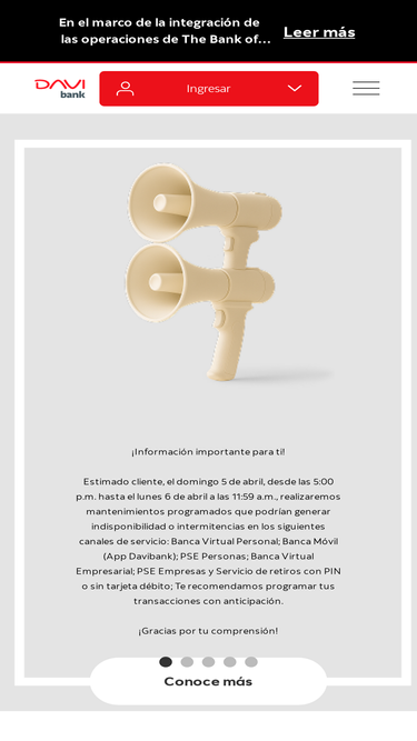 79%Descubre DAVIbank: tu banco ideal para tarjetas de crédito, cuentas de ahorro, CDT, seguros y préstamos, inversiones y más. Gestiona tu dinero fácilmente y seguro.