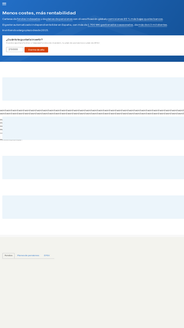 Gestión automatizada de carteras de fondos de inversión indexados, gestión automatizada de carteras de planes de pensiones indexados, segunda opinión sobre carteras gestionadas por otras entidades, gestión automatizada de SICAV's, fondos o planes de pensiones, planes de pensiones de empleo.