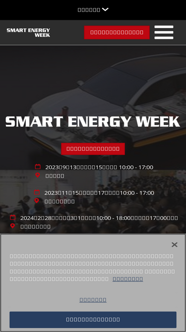【2026年3月・9月・11月開催】新エネルギー業界の国際商談展、SMART ENERGY WEEK。省・創・蓄エネに加え、スマートシティに関する技術、製品、サービスが出展します。太陽光・風力発電、燃料電池、新電力ビジネスなど8分野の展示会で構成。業界の発展に貢献しつつ、年3回、東京と大阪で開催します。業界トップが講演するカンファレンス(セミナー)や特別企画(イベント)も多数開催!(RX Japan主催)
