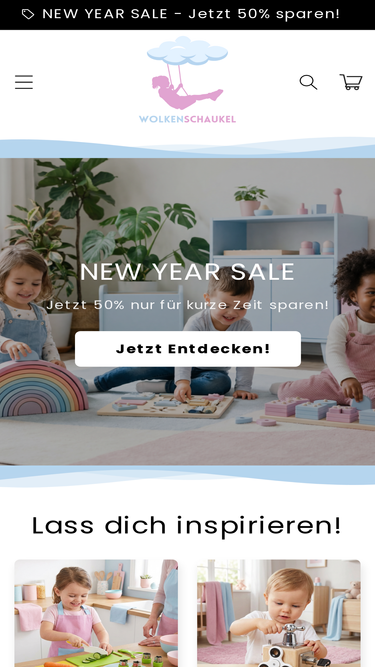 30%Entdecke bei Wolkenschaukel eine liebevoll kuratierte Auswahl an Spielzeug, die Spaß macht und die Entwicklung fördert. Jedes Stück ist sorgfältig ausgewählt, um die Fantasie deiner Kinder anzuregen. Schließe dich unserer Familie an und genieße das Abenteuer Elternsein mit uns. Danke für deine Unterstützung.