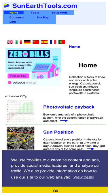 collection of tools to know and work with solar energy. calculation of: sun position, latitude longitude coordinates, photovoltaic systems, emissions co2.