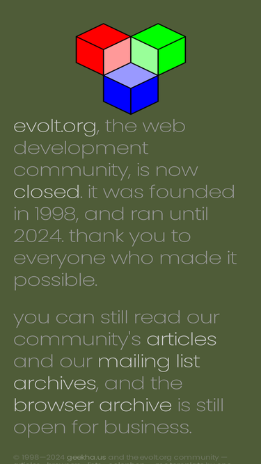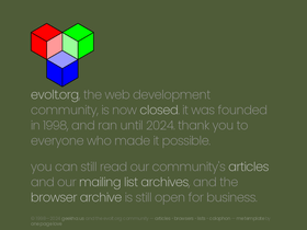 83%Founded in 1998, evolt.org was one of the oldest Web development communities in existence. Through our mailing lists, articles, and archives, we have strived to work together in sharing our collective knowledge to improve the Web for all of us.