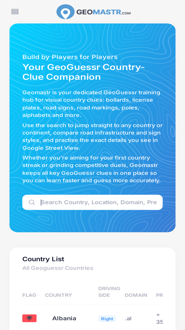 welcome to geomastr! dive into important datasets and get better. enhance your geoguessr experience with our tips.