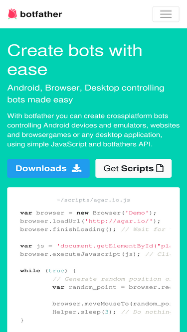 with botfather you can create cross-platform bots controlling android devices and emulators, websites and browser games or any desktop application, using simple javascript and botfather's api.