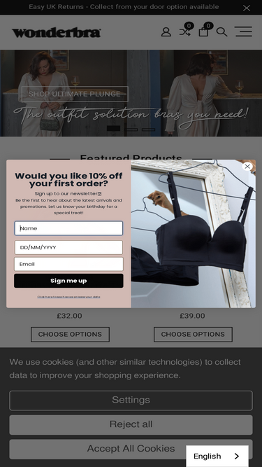 100%Description Delivery Information Description Add some glamour to your wardrobe with this sexy, modern triangle lace bra while achieving the famous Wonderbra shape and fullness. The deep V construction creates a cleavage enhancing shape to take you from day to night. Key Features Modern, sleek look Deep V triangle bra for a soft cleavage enhancing shape Product Details Lace layer on outer cups Smooth cups with a separated gore Two fabric layers to ensure support even in bigger cup sizes Hem folded with elastics and zigzag stitching finishings for clean edges and a modern look Total outer microfiber for softness on the skin and clean silhouette Hand wash only Underwired bra Straps are non-detachable Gradual padding at bottom of cup in smaller sizes for lift Preformed cup with no padding and horizontal outer cup seam in larger sizes Delivery Information DELIVERY OPTIONS - for more information, visit our Delivery & Returns page. All orders received by 3pm are shipped the same day (Mon-Fri, excluding Bank Holidays) from the UK. Any additional charges for customs clearances must be borne by you and we cannot predict what they may be. Free Shipping applies to UK mainland delivery addresses only. Wonderbra normally dispatches your order the same or next working day after placing the order. It might take longer during very busy periods such as Sale. Express deliveries are always packed and despatched in priority DELIVERY OPTIONS United Kingdom (including Channel Islands) Orders under £50 | £3.95 - Deliveries are dispatched with Royal Mail Tracked delivery in 3-5 days from despatch. Orders over £50 | FREE - Deliveries are dispatched with Royal Mail Tracked delivery in 3-5 days from despatch. Gift Wrapping Service | £4.95 - Make them feel extra special with their items carefully tissue wrapped with Wonderbra branding, all sealed in a box and discreet unbranded bag (so you can keep it a secret!) UK Next Working Day (Orders shipped same day if before 3pm Mon-Fri)
