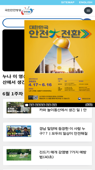 국민안전방송, 재난사고 예방, 안전 행동요령, 대처요령 등 동영상 제공.