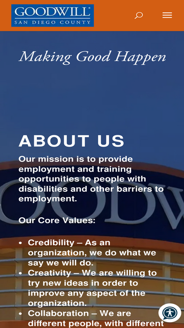 Goodwill operates through the resale and recycling of donated goods. By donating and shopping at Goodwill, you help people in San Diego get jobs.