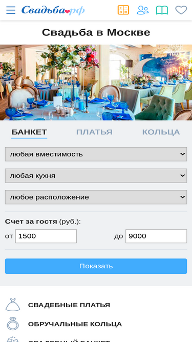 92%свадебный портал с каталогом товаров и услуг для праздника