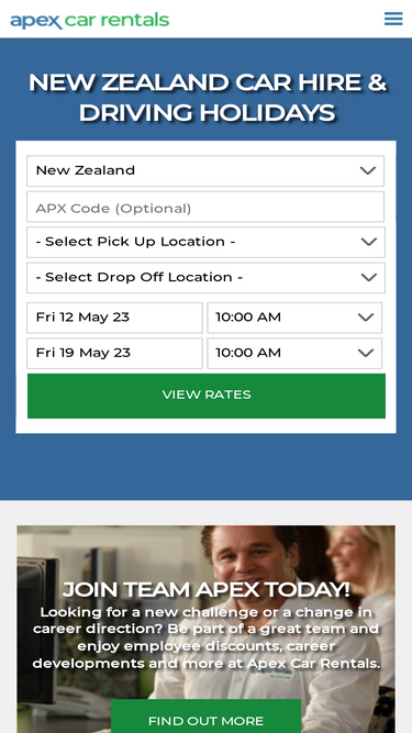 apex car rentals is new zealand's most popular car rental company. great value and no hidden costs. choose apex and experience car hire the kiwi way.