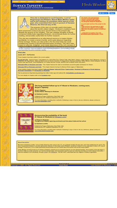 largest hindu and hinduism, hindu kids site on thenet. contains comprehensive introduction to hindu dharma, completetext of 85 books, several scriptures, listing of hindu temples aroundthe world, newsgroup archives, information on hindu culture, hindufestivals, hindu calendar, hindu history, links to all known hindusites, a special section for kids and current events. special sectionson jain, sikh and buddha dharma.