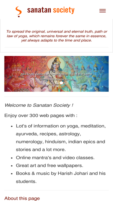 100%sanatan society offers free wallpapers of hindu gods full-screen, yoga & meditation seminars, indian astrology, ayurvedic massage, home remedies, vegetarian recipes, online mantras,. and a lot more.