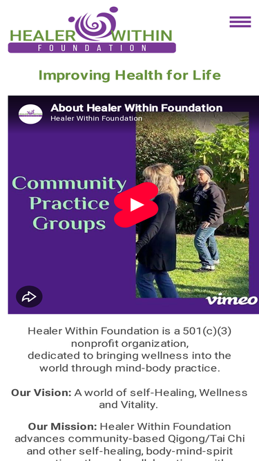healer within foundation is a nonprofit sharing qigong and tai chi and related mind body arts for health for individuals and communities.