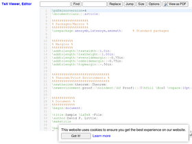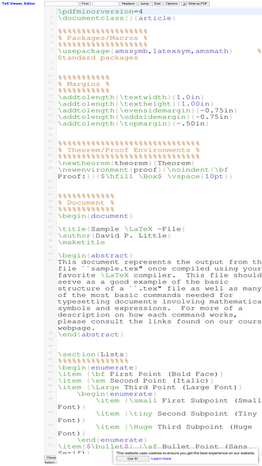 This is a free online LaTeX viewer, editor for your browser. It allows you to create and manage LaTeX file directly on your browser and generate a PDF. You can easily view or edit your TeX, LaTeX file, you can also use it as TeX reader to open a raw TeX file.