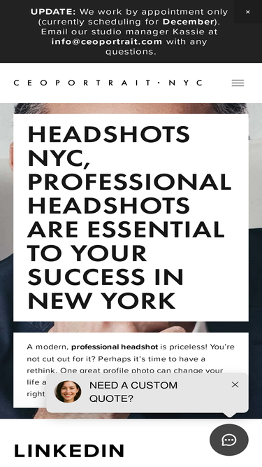 Headshots NYC - CEOportrait is Manhattan based professional headshot / portrait photographers studio. LinkedIn headshot, Resume, Publication, Media Kit, Press Release, Residency Headshots in NYC. Model tests, creative and fashion photography. 100% Satisfaction Guaranteed. 7 days a week, 7AM - 10PM;