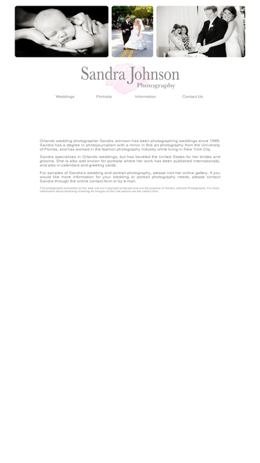 this is the homepage of orlando wedding photographer sandra johnson. on this site you will find samples of her wedding photography, and information about sandra as well as her style of photography.