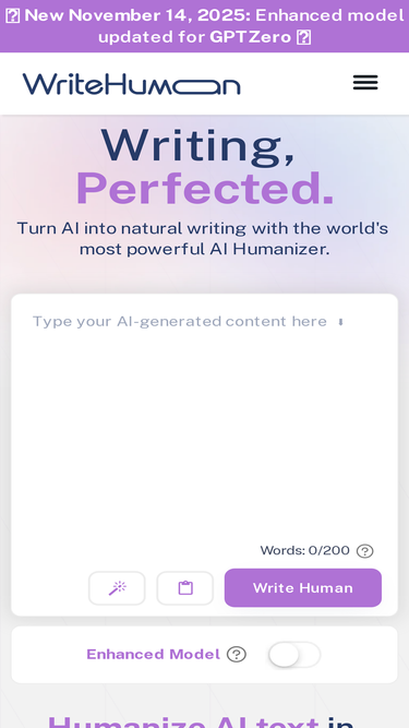 Humanize AI text in seconds with WriteHuman’s AI Humanizer and detector. Works with Copyleaks, ZeroGPT, and GPTZero, and turn AI into human-quality writing. Try it free.