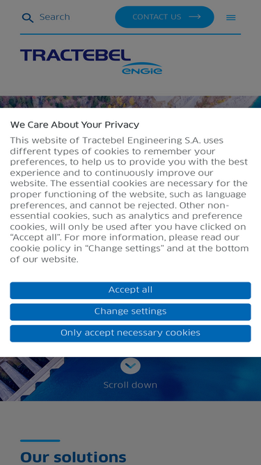Bienvenue sur le site web de Tractebel. Toute utilisation du site web de Tractebel est régie par les conditions générales du Groupe ENGIE que l'utilisateur certifie accepter et qu'il s'engage à respecter sans conditions.