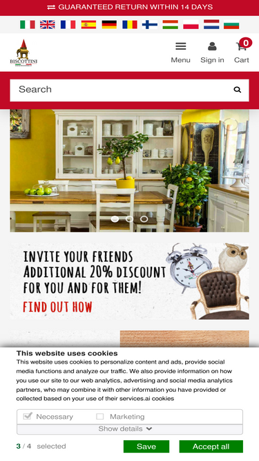 在 1月 2026,arredamento1.it 被評為與 ideastile.it 相似度第四高的網站,shop.biscottini.it 則位居第五。