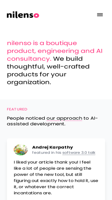 nilenso is a boutique technology consultancy based in india and canada. we build thoughtful, well-crafted products for your organization.