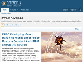前 10 名當中的其他 5 名競爭對手為 bharatdefencekavach.com(11月 2025的造訪量為 -- 次);indiandefencereview.com(11月 2025的造訪量為 3.3M 次);india-defence.com(11月 2025的造訪量為 38 次);orfonline.org(11月 2025的造訪量為 596.8K 次);globalsecurity.org(11月 2025的造訪量為 289.6K 次)。
