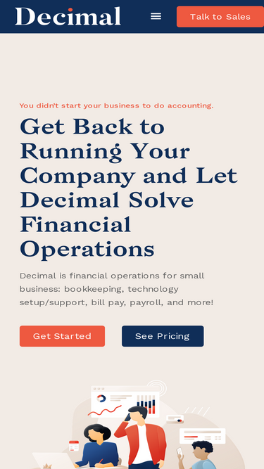 Decimal is fully outsourced financial operations for small businesses: bookkeeping, technology setup/support, bill pay, payroll, and more.