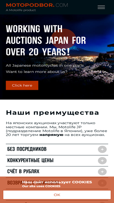 94%самый удобный сервис для подбора и покупки мотоцикла из японии. работаем по всей россии. технические характеристики, фото, цены и видео обзоры. компания projapan поможет подобрать мотоцикл по лучшей цене