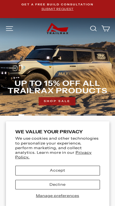 89%Born from our Jeep roots, TrailRax creates Jeep roof racks and storage systems that blend rugged capability with refined design. Our lineup for the Jeep Gladiator and Wrangler delivers heavy-duty load capacity, modular mounting options, and aerodynamic style—all trail-tested and made in the USA. Whether you’re overlanding, camping, or hauling gear, TrailRax helps your Jeep handle every adventure with confidence.