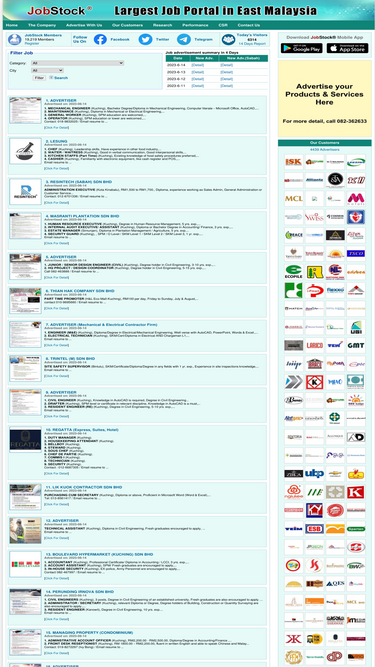 87%jobstock - largest job portal in east malaysia. jobs in kuching, samarahan, sibu, miri, bintulu, sarawak, kota kinabalu, sabah, brunei