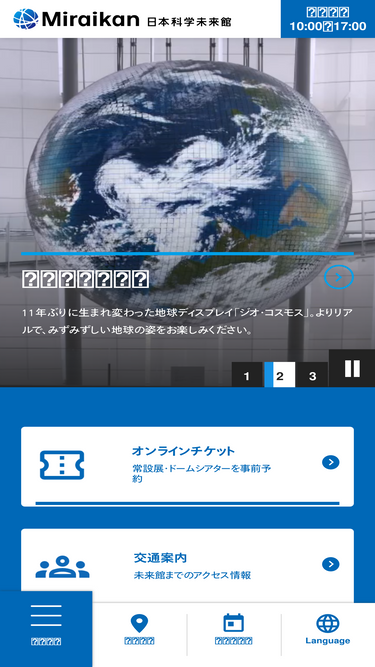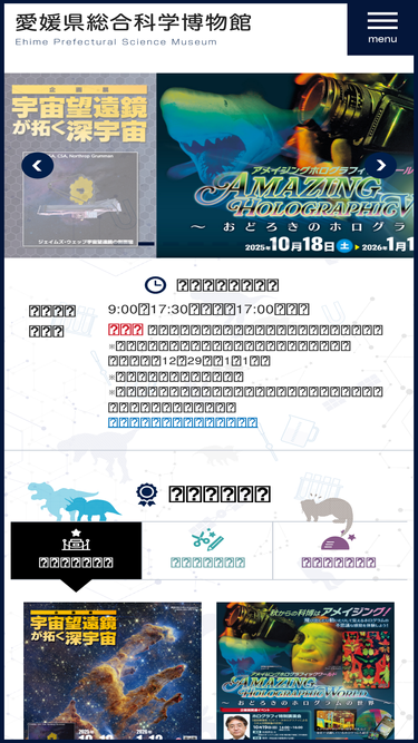 プラネタリウムの番組案内、家庭でできる実験紹介などコンテンツも充実。