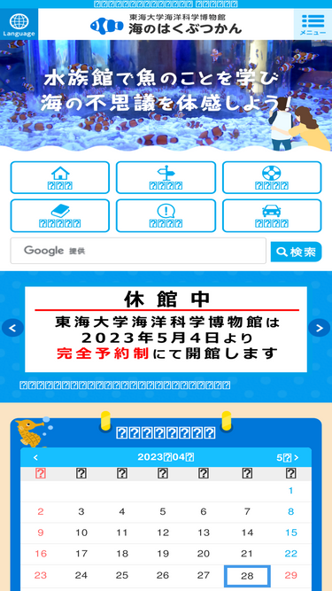 60%学校団体向け体験学習プログラムの予約受付について【2023年3月まで】 東海大学海洋学部博物館では、海洋科学博物館と自
