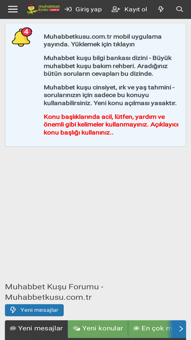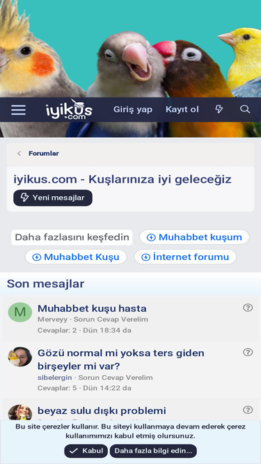 iyikus.com forum sitesinde, Muhabbet kuşu, Sultan Papağanı, Cennet Papağanı, Forpus ve diğer kuş türleriyle ilgili bilgiler yer alır