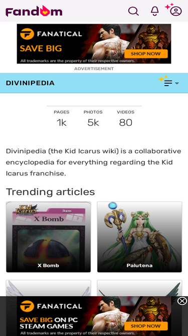 hello, and welcome to divinipedia, the number one resource for kid icarus information on the web! we are currently maintaining 1,106 articles and counting, but we could always use more help, so be sure to join us today!...that kid icarus: of myths and monsters was released in japan only a month...