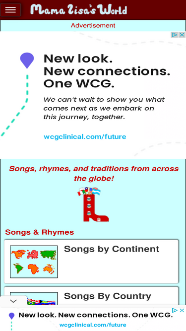 Mama Lisa's World presents thousands of traditional kids songs from over a hundred countries and cultures! We also feature a major collection of Mother Goose Rhymes, global recipes, holiday traditions and lively conversations about childhood around the world.