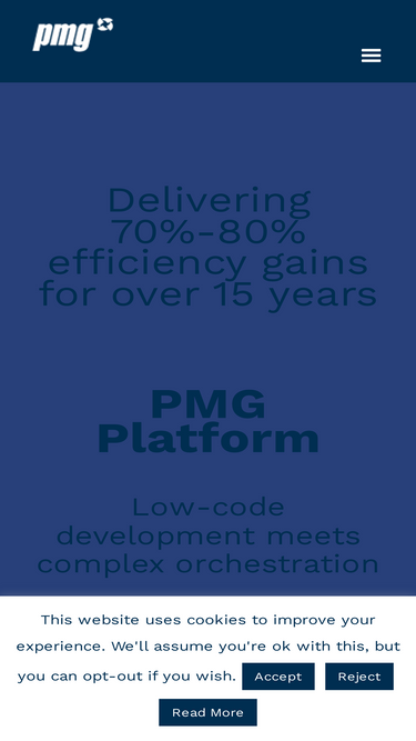 100%PMG empowers its customers to automate processes and share data across other systems and applications. The PMG low-code software platform orchestrates people, systems and data to streamline operations and enhance user experience.