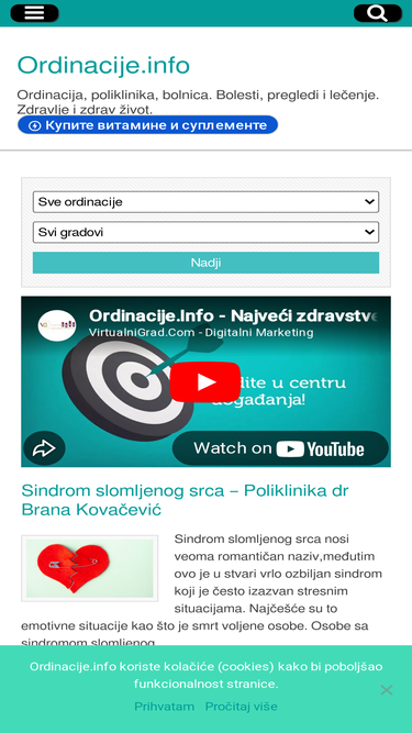 ordinacije - bolesti i lečenje. ordinacije, poliklinike, klinike, bolnice i druge medicinske ustanove srbije. medicinska oprema, aparati i ortopedska pomagala.