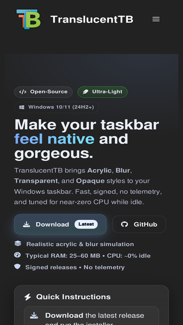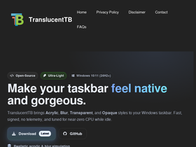 100%Download TranslucentTB . It will brings Acrylic, Blur, Transparent, and Opaque styles to your Windows taskbar.
