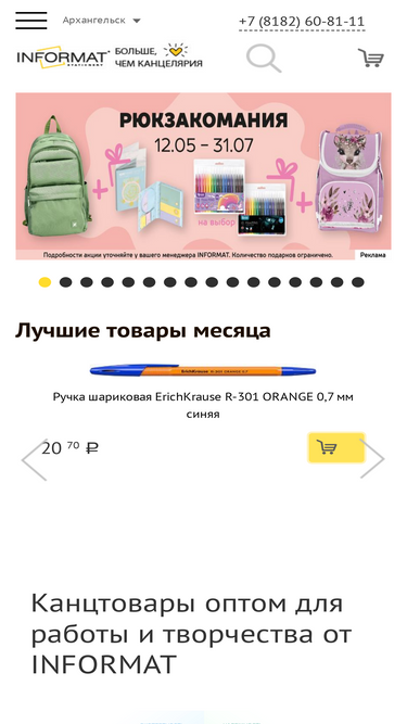 49%интернет-магазин inформат предлагает купить канцтовары для дома и офиса по выгодной цене с доставкой. на сайте представлен широкий ассортимент недорогих канцелярских товаров. продажа оптом и в розницу. оформить заказ можно онлайн. доставка по москве и всей россии.
